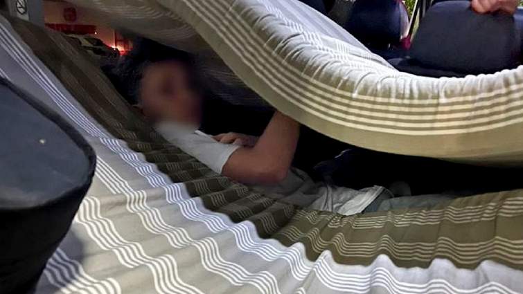 Українець хотів перетнути кордон у багажному відділенні мікроавтобуса під сумками і матрацом (фото Держприкордонслужби)