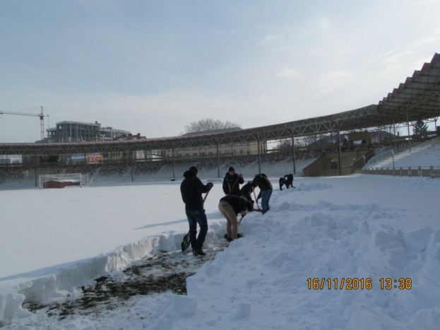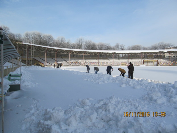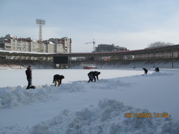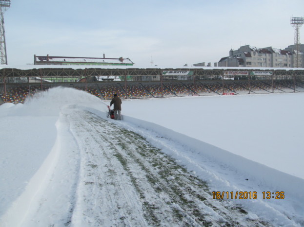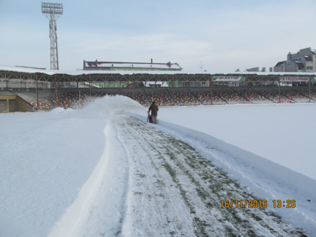 Від сьогодні, 16 листопада, відповідні служби розчищають тернопільський стадіон від тон снігу, який випав протягом 12-13 листопада.