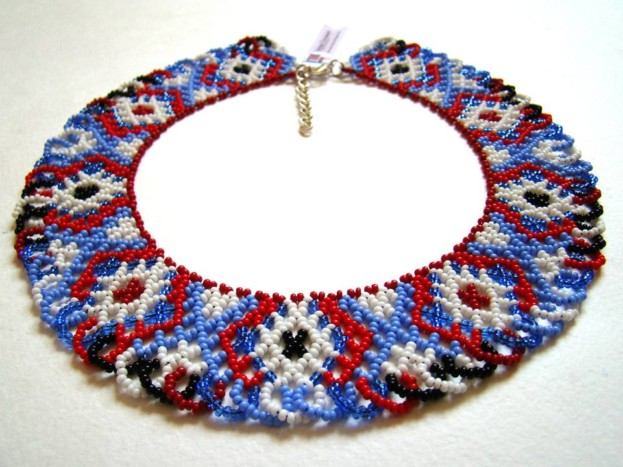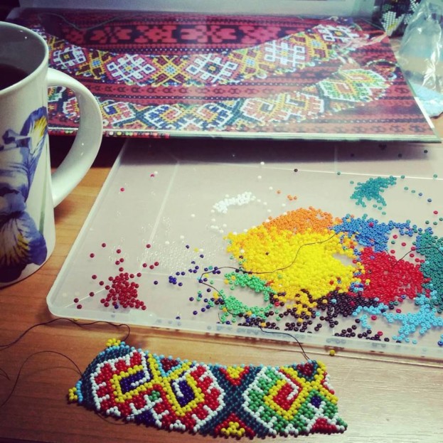 – Технік у бісероплетінні є десятки. Найчастіше я працюю в техніці плетіння сіточкою. Вона є найпоширенішою для виробів в українському стилі. Робота над виробом починається зі складання схеми, розміщення елементів і підбору кольорів. Далі йде безпосередньо процес плетіння. Коли виріб уже готовий, до нього пришиваю застібку або зав’язки. Відповідно до складності візерунку, кількості кольорів та розміру самого виробу, час на виготовлення затрачається різний. В основному це від кількох годин до тижня.
