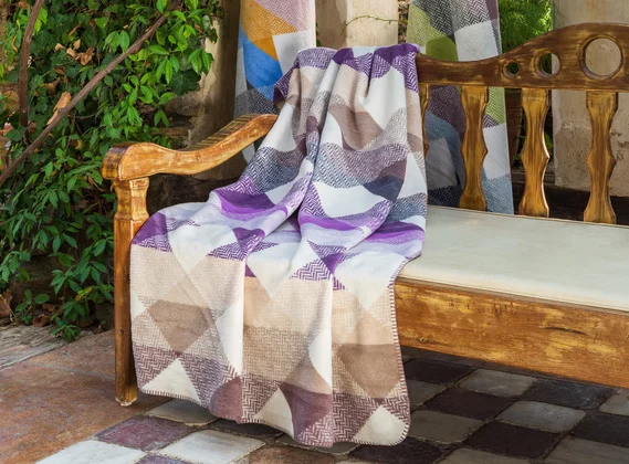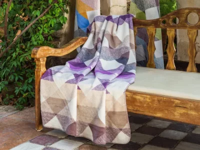 - Покривала та пледи. Додають затишку спальні або вітальні. Найкращий матеріал для виготовлення покривал – натуральна вовна (мериносова, кашемір, альпака). Пледи часто виробляють з флісу. Він легкий. Добре зберігає тепло. Також використовують штучне хутро. Вироби з нього – стильний варіант для сучасних інтер’єрів.