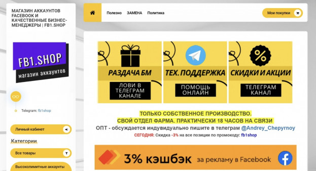 У магазині акаунтів FB1.shop представлений широкий вибір ПЗРД акаунтів з потужним ручним фармом, високолімітні і безлімітні акаунти та БМ, а також завжди є Fan Page з пройденим ЗРД. У FB1.shop постійно оновлюється асортимент, є щотижневі знижки та вигідні умови для гурту.
