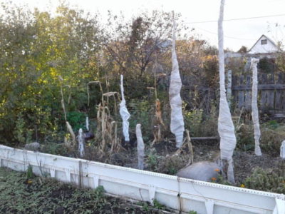 - Останній етап у підготовці молодого саду до зими — укриття дерев. На ньому зупинимося більш детально.