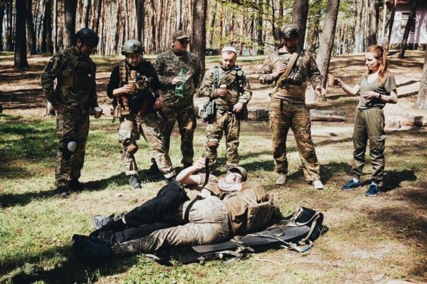 – Після сніданку весь день розписаний командирами рот. Одні на полігоні покращують навики стрільби, бо фотки мертвої русні самі себе не зроблять. Паралельно на базі медики вчать інших, як самим не потрапити на фото до росіян. До речі, у медиків найсуворіші умови – вони реально знають ціну тренувань і це єдине місце, де ніхто не сміється, не жартує, а іноді може боляче отримати по голові. Недалеко від них, в тіньочку, інструктор читає лекцію про застосування хімічної зброї та захист від неї. Оператори дронів занурені в пульти, а протитанкові групи на футбольному полі розклали навколо себе шведські та американські гранатомети, – повідомили наші захисники.
