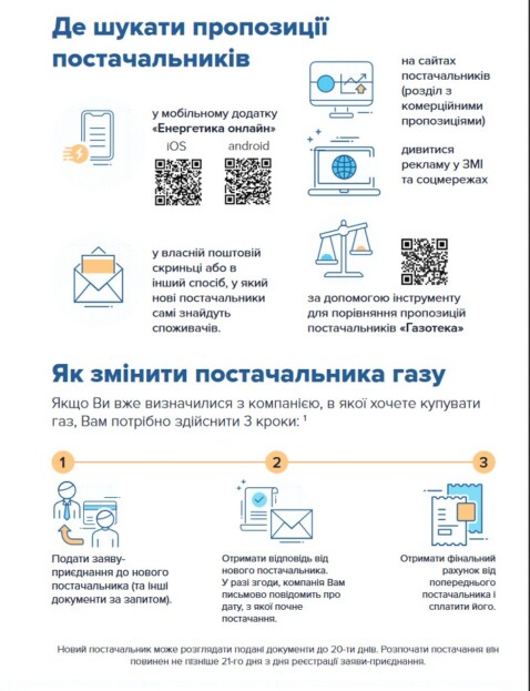 Нині перейти можна до будь-якого українського постачальника, який має відповідну ліцензію. Наприклад, власник квартири у Тернополі може підключитися до ТОВ «Одесагаз-постачання» або ж державного «Нафтогазу» та отримувати газ від цих компаній замість місцевого ТОВ «Тернопільоблгаз». Змінити постачальника може і приватний будинок, і окрема квартира у багатоповерхівці.