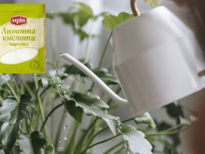 Кілька кристаликів лимонної кислоти нейтралізують ці мінеральні солі, які містяться в жорсткій водопровідній воді, і які залишають на поверхні землі у вазоні або на стінках горщика непривабливий білий наліт. Карбонат кальцію перетворюється в більш доступну для рослин форму.