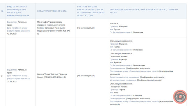 З того ж року у спільній сумісній власності Руслана Романовича, Коретчука Ярослава Володаровича та Чорній Анни Євгенівни є авторське право на книжку “Сотня “Дністер”. Терня чи Лаври”.