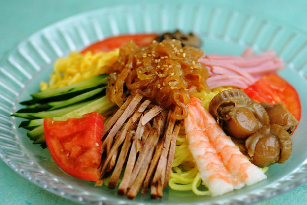 - Японська окрошка з куркою Sous-Vide. Якщо поглянути на склад цієї страви, то можна приємно здивуватися від того, яке розмаїття інгредієнтів входить до японської окрошки цього виду. Серед складників є: огірок, помідор, лимон, кунжут, зелена цибуля, бобова локшина, петрушка, куряче м’ясо, цибуля «марс», соус «чилі-гарлик», редиска, зелена цибуля та кисломолочна заправка, котру готують на основі кефіру і васабі.
