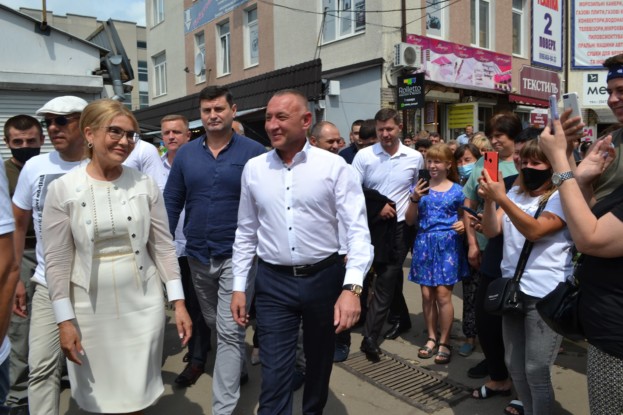 Юлія Тимошенко і керівник обласної організації ВО "Батьківщина" Юлія Тимошенко і керівник обласної організації ВО "Батьківщина" Степан Горуц спілкуються з тернополянами на центральному міському ринку