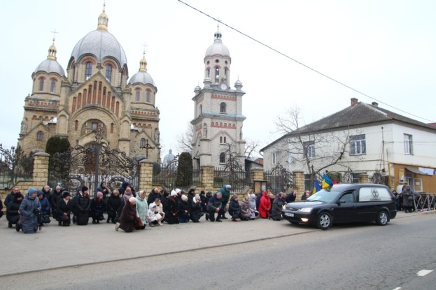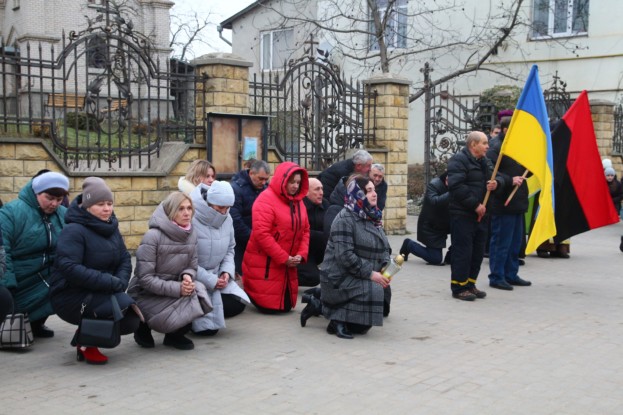 Живим коридором слави, на колінах, зі схиленими головами, прапорами та запаленими лампадками зустрічали свого Героя жителі Товстенської громади.