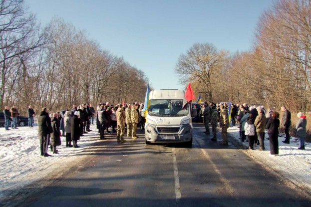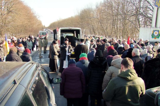 Шумська громада зустріла полеглого воїна на колінах, із сумом і сльозами в очах. На центральному шляху при в’їзді в громаду священнослужителі відправили заупокійний молебень. Після цього траурний кортеж, супроводжуваний пронизливими звуками сирени, рушив до рідного села.