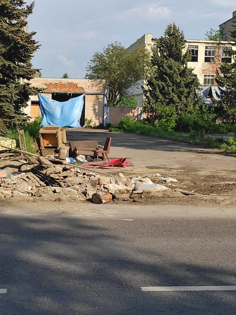 “Оце все що залишилось з блокпоста на м’ясокомбінаті. Блоки були потрібні і їх забрали, а решту сміття нехай собі валяється”, – повідомив дописувач.