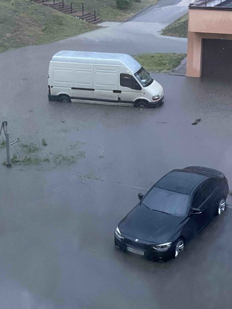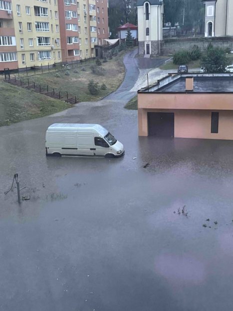 Внаслідок значних опадів у Тернополі 9-10 липня вода опинилася у під’їздах та підвалах багатоповерхівок, автівки – підтомлені. Наслідки можна побачити на відео.