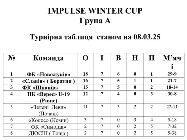 Представник Тернопільщини на Зимовому турнірі «Impulse Winter Cup», котрий проходить у Рівному – «Зелені леви» з Почаєва – в останньому турі групової стадії мав грати проти рівненського «Вереса-U-19». Однак суперник відмовився від гри і почаївській команді організатори зарахували технічну перемогу.