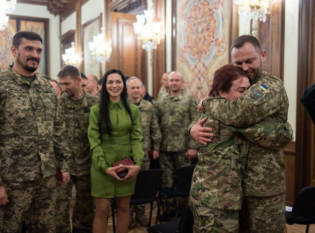 Президент України зустрівся з українськими захисниками й захисницями, які були звільнені з російського полону, та вручив їм державні нагороди. Про це повідомляє сайт глави держави.