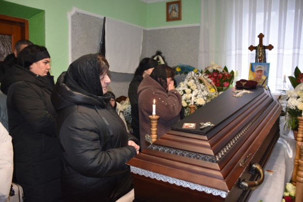 Односельчани не стримували сліз, ставали навколішки, утворивши по всьому шляху живий коридор. Опісля загиблого захисника провадили до місця його вічного спочинку. Останнє прощання з родиною і український стяг, яким була вкрита домовина Героя, військові передають родині як символ держави, за яку віддав життя загиблий.