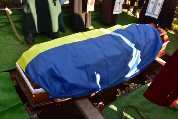 Останнє прощання з родиною і український стяг, яким була вкрита домовина Героя, військові передають родині як символ держави, за яку віддав життя загиблий.