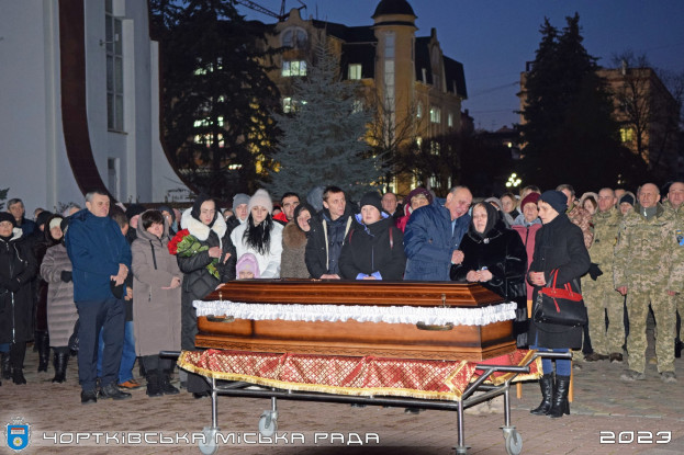 27 грудня чортків’яни знову зібрались на подвір’ї Собору верховних апостолів Петра і Павла, щоб віддати останню шану загиблому на російсько-українській війні воїну, санітару-стрільцю Мерені Віталію (27.01.1990 року народження).