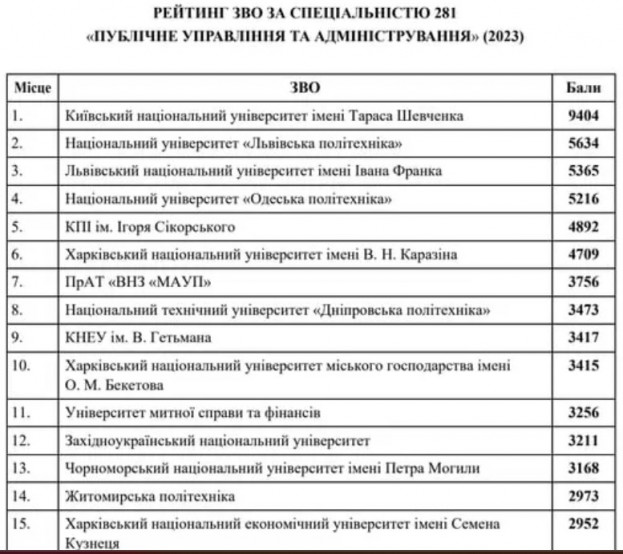 У такому рейтингу, де оцінюванню підлягали 134 університетів, Західноукраїнський національний університет посів гідне 12 місце, що свідчить про ефективність та якість освітнього процесу у закладі освіти, а отже належний рівень підготовки ним фахівців з публічного управління та адміністрування.